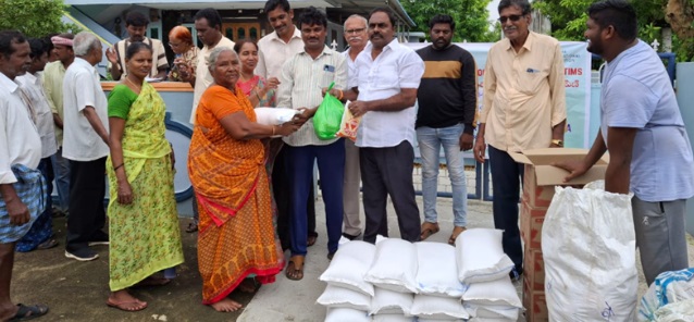 Each kit was thoughtfully prepared to meet immediate needs and included a variety of essential items such as 10 kg of rice, cooking oil, toor dal (pigeon peas), tea powder, sugar, salt, turmeric, pepper, biscuits, and other basic food supplies. These provisions were crucial in helping families sustain themselves while they rebuilt their lives in the aftermath of the floods.