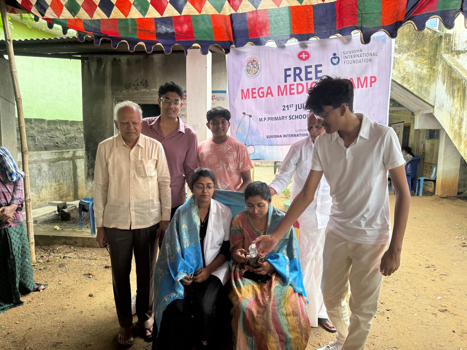 Two Indian American high school students based in California, Abhiram Dhulipala and Sriram Vempati, spearheaded an impactful initiative in collaboration with Suvidha Vikas Trust, India, and Jagruthi, an NGO based in India. They organized a free mega medical camp to provide comprehensive health check-ups directly to the doorsteps of impoverished patients in India. This significant event took place on July 21, 2024, at M.P. Primary School in Ashtnagurthi Village, Wyra Mandal, Khammam District, Telangana. The medical camp was a remarkable success, attracting over 400 patients who sought assistance for various health issues. A dedicated panel of doctors examined the patients, and free medicines were distributed to address their medical needs. To ensure maximum participation, extensive efforts were made to inform the local communities in Ashtnagurthi, Gollen Pahad, and surrounding villages about the medical camp. Information about the event, including details about free doctor consultations and medicine distribution, was shared across multiple channels. This included social media platforms like WhatsApp groups, community volunteer groups, and banners displayed at central locations within the villages. Additionally, the day before the camp, announcements were made using the traditional Dappu instrument (Dandora), further spreading the word and ensuring the information reached as many households as possible. The medical camp was officially inaugurated at 9:30 am by Amaraneni Manmadha Rao, a board director of Suvidha Vikas Trust – India. The event was honored by the presence of several distinguished dignitaries fromKhammam and Wyra, including Dr. Naragani Ramprasad Rao, MBBS, MD; Dr. Kolli Anudeep, MBBS, MD; Dr. Vasireddy Nirmala, MD, DGO; Dr. Jangala Gopi Krishna, MBBS, DCH, DNB (Pediatrics); Dr. Jaya Babu, BHMS; Dr. Harika, BDS; M. Narasimha Rao, M. Kumudini, and E. Madhavi from Jagruthi, NGO, India Abhiram Dhulipala and Sriram Vempati worked diligently alongside the camp organizers to ensure the event’s success. Their dedication to enhancing health outcomes for underserved communities is a testament to their commitment and collaborative spirit. The organizers also collected feedback from numerous patientsabout the medical services, the performance of the doctors and staff, and the overall hospitality and arrangements. The responses were overwhelmingly positive, with many patients expressing gratitude and recommending that such medical camps be held annually. This feedback highlights the effectiveness and impact of the initiative, underscoring the organizers’ commitment to community health and well-being.